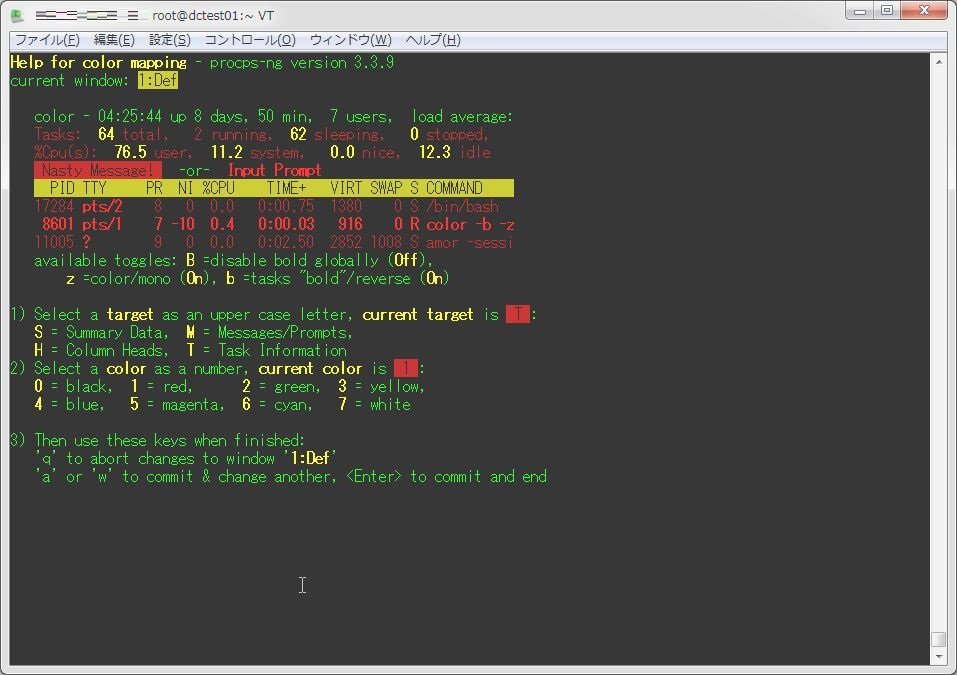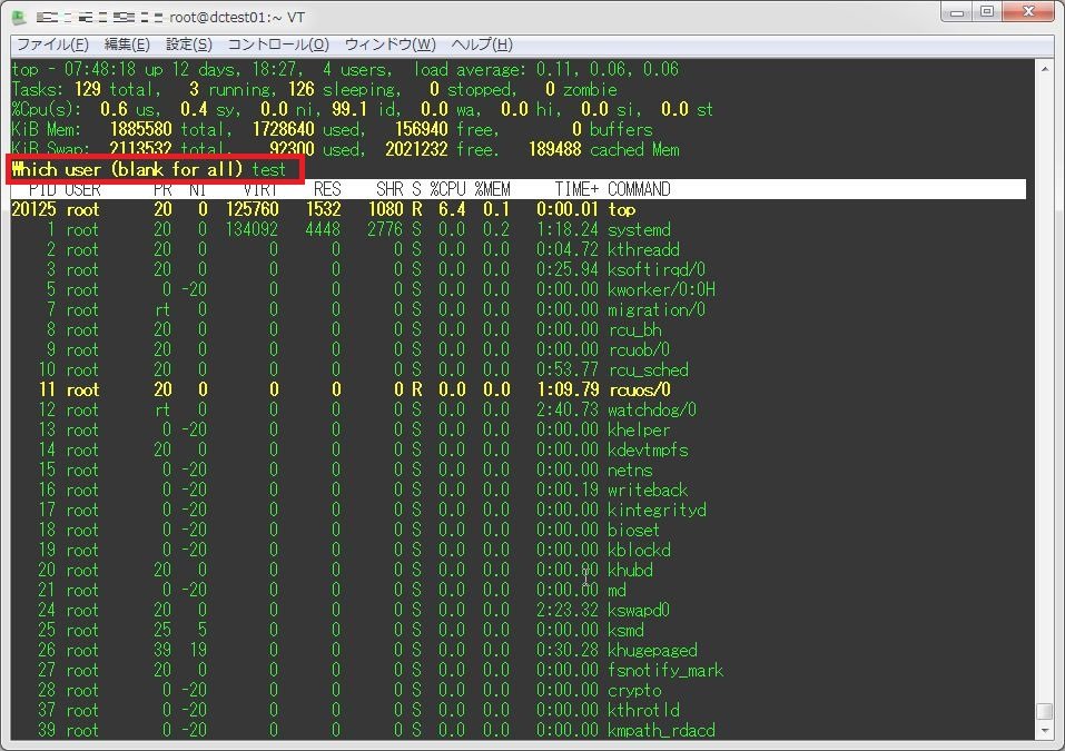 top画面実行中に「z」キーを押下することで、画面をハイライト表示させることが出来る。