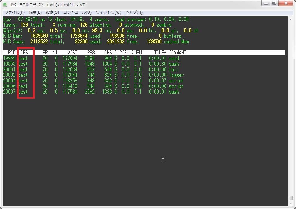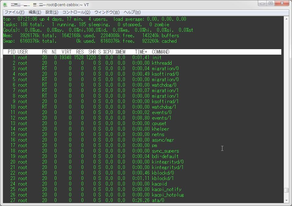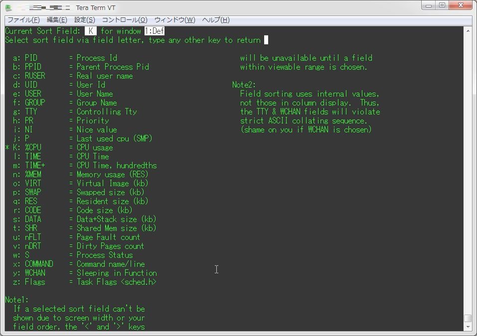 なお、CentOS 6等の場合は、「Shift + O」でソート業を切り替えることが出来る。