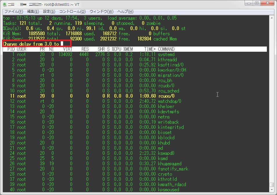 なお、topコマンド実行中でもこの更新間隔は指定出来る。