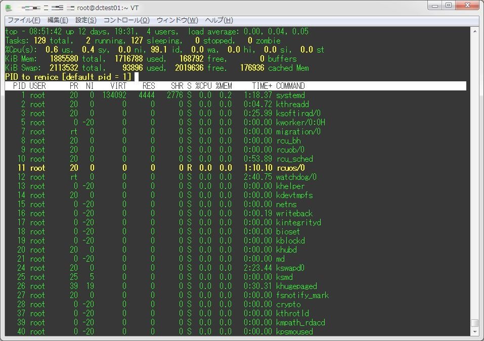 topコマンド実行中に「r」キーを実行することで、指定したPIDのnice値を変更することが出来る。