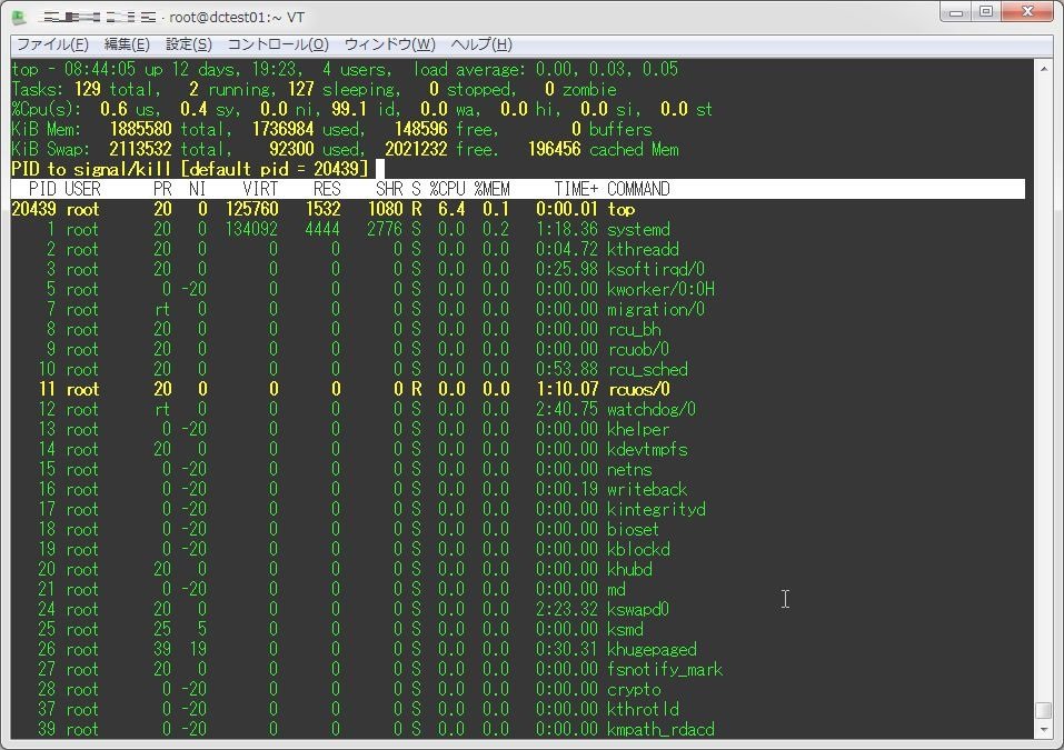 topコマンド実行中に「k」キーを実行することで、指定したPIDのプロセスをkillすることが出来る。